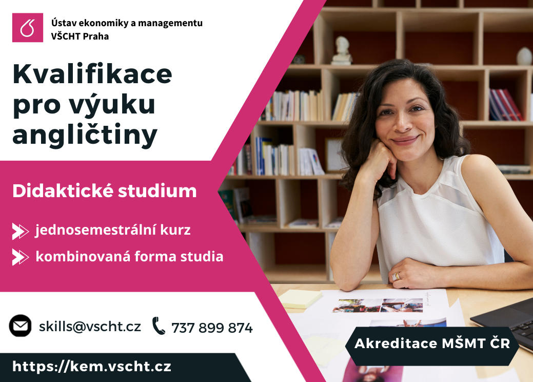 Jednosemestrální Doplňující didaktické studium je akreditované v systému dalšího vzdělávání pedagogických pracovníků. Studium nabízíme ve dvou formách: prezenční a kombinované. V obou formách jsou součástí studia konzultace, ve vybraných disciplínách je prezenční stadium doplněno interaktivní prací on-line. Výuka probíhá v angličtině.
