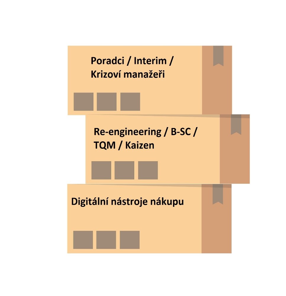 Firmy totiž mohu stejný problém řešit různými způsoby: posílením či zkvalitněním týmu, investicemi do strojního vybavení, změnou procesů, nebo třeba digitalizací nákupu. Jinými slovy, digitalizace nákupu si musíme představit jako krabičku v regálu plném jiných krabiček (možných řešení daného problému). A my si krabičku digitalizace kupujeme, protože si myslíme, že náš problém vyřeší lépe než jakákoli jiná krabička. Marketéři digitalizace samozřejmě chtějí, abychom po jejich krabičce sáhli automaticky, ale my musíme odolat pokušení (manipulaci) a pečlivě rozvážit, zda právě digitalizace je tím správným řešením.