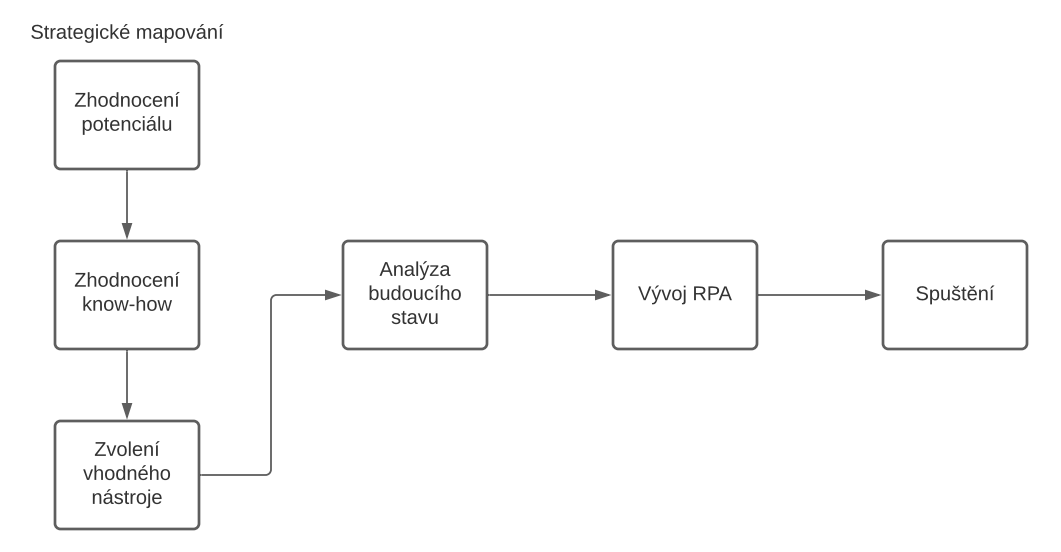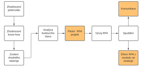 Schéma I: současný proces zavádění RPA ve společnosti, vlastní zpracování